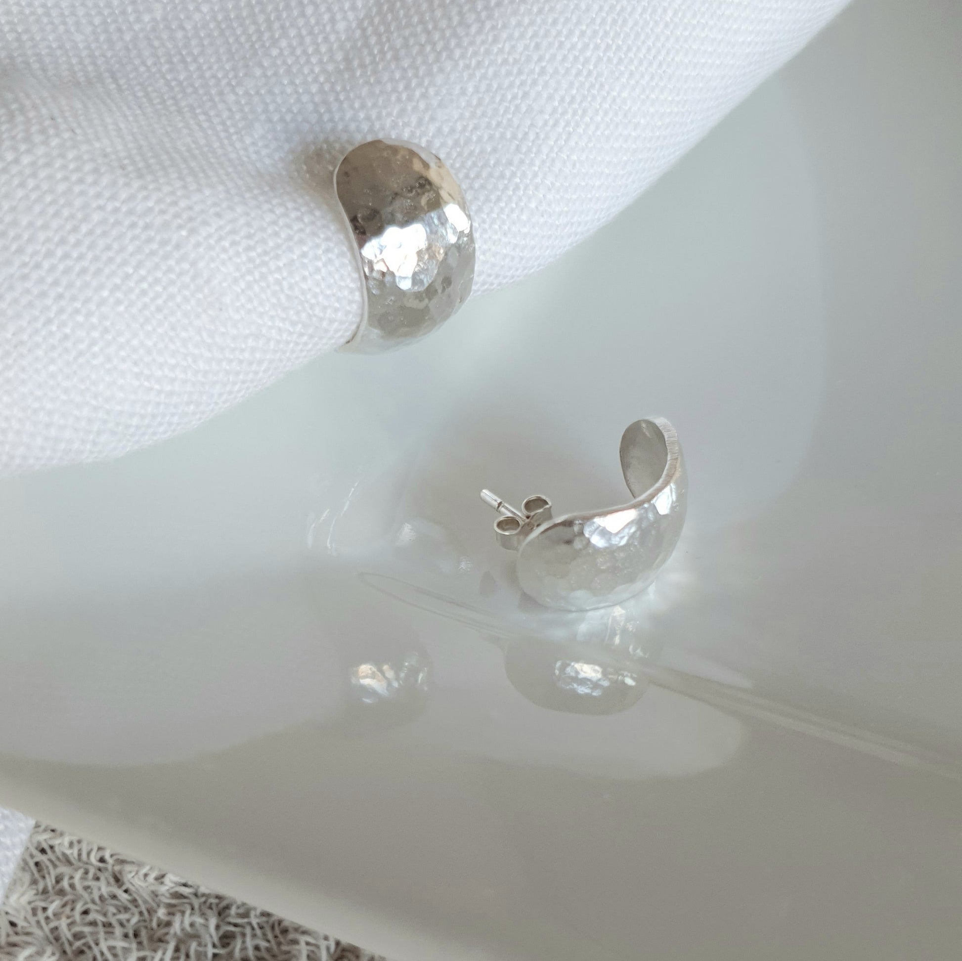 Los Aros Azara son un verdadero accesorio para tu look. Con su diseño de plata martillada y 2cm de alto. Disfruta de su estilo elegante y único, una elección imprescindible para cualquier amante de la moda.